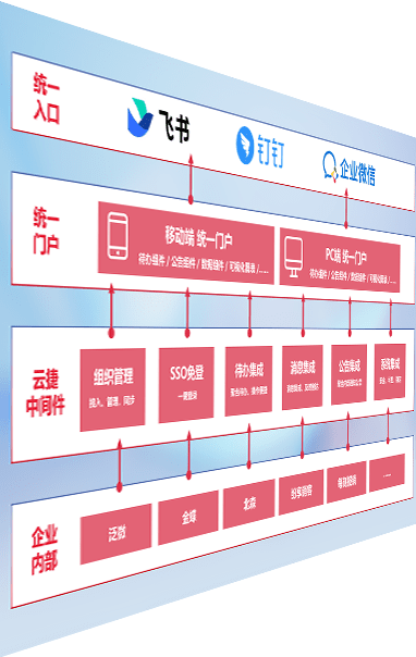 对协作平台提供支持服务,,,支持企业应用与协作平台对接,,,,包含组织同步、、、消息集成、、待办集成等。。。。支持目前主流的协作平台:钉钉、、企微和飞书。。